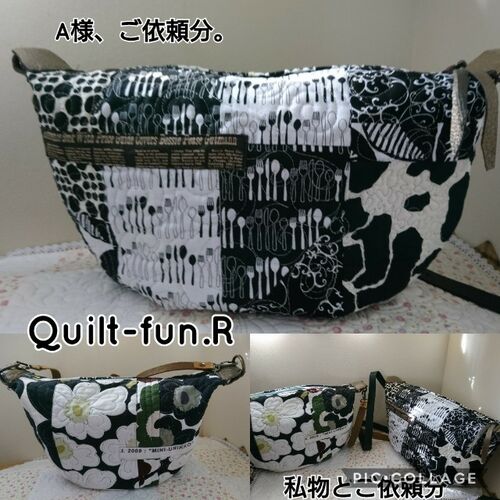 残暑厳しく何となく、くたびれ気味ですがご依頼頂いているものがまだまだ手付かずでm(__)mスミマセン~ 前にマリメッコの端切れでMYポシェットを作り下げていたところ、モノトーン系で同じ形のご注文頂いた分です。 マリメッコは布柄自体に存在感があり定番…