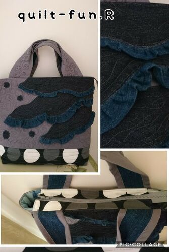 大人かわいい感じの布にミシンキルトをして少し刺繍も入れてみました。底はタックをとってます。明日、60代の方の元にお嫁入り✨